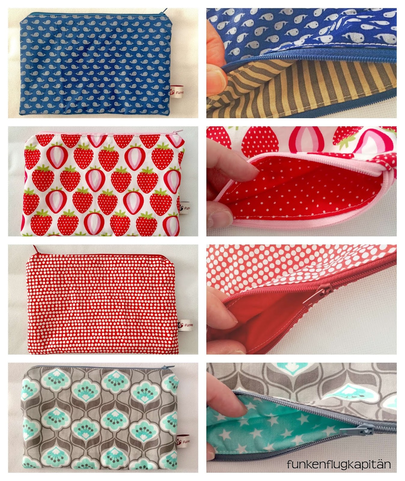Die kleinen Täschchen mit Reissverschluß sind schnell genäht und man kann sich mit den Stoffen kreativ austoben. Ich verwende für die Täschchen auch oft meine Stoffreste. So Täschchen kann man doch immer brauchen. Du kannst sie ja für alles mögliche verwenden, Kosmetik, Stifte und allem möglichen Kleinkram. Ich habe sie immer in meiner aktuellen Handtasche dabei, Kleinkram ist so schnell von einer Tasche in die andere geräumt. Die Größe kann man beim nähen variieren wie man das möchte. Das Schnittmuster ist mein eigenes.