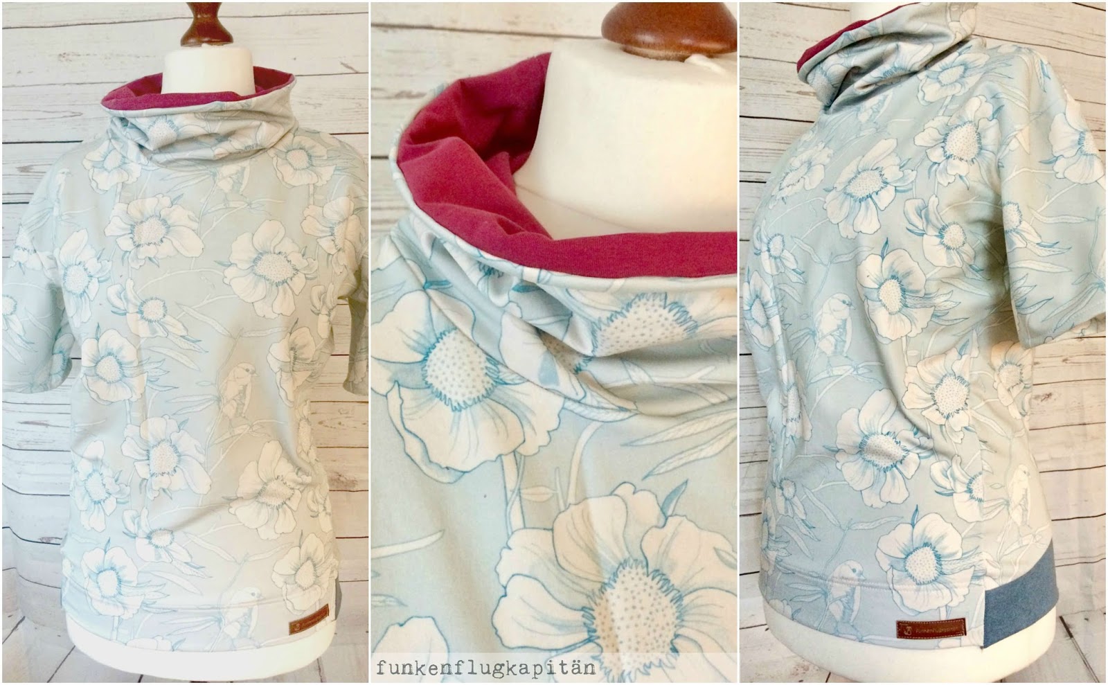 (Werbung ohne Auftrag) Ich habe gerade Oberteile genäht wie verrückt, und habe immer noch so viel schönen Stoff da. Genäht habe ich zum Beispiel diesen kurzarm Sweater mit Kragen.