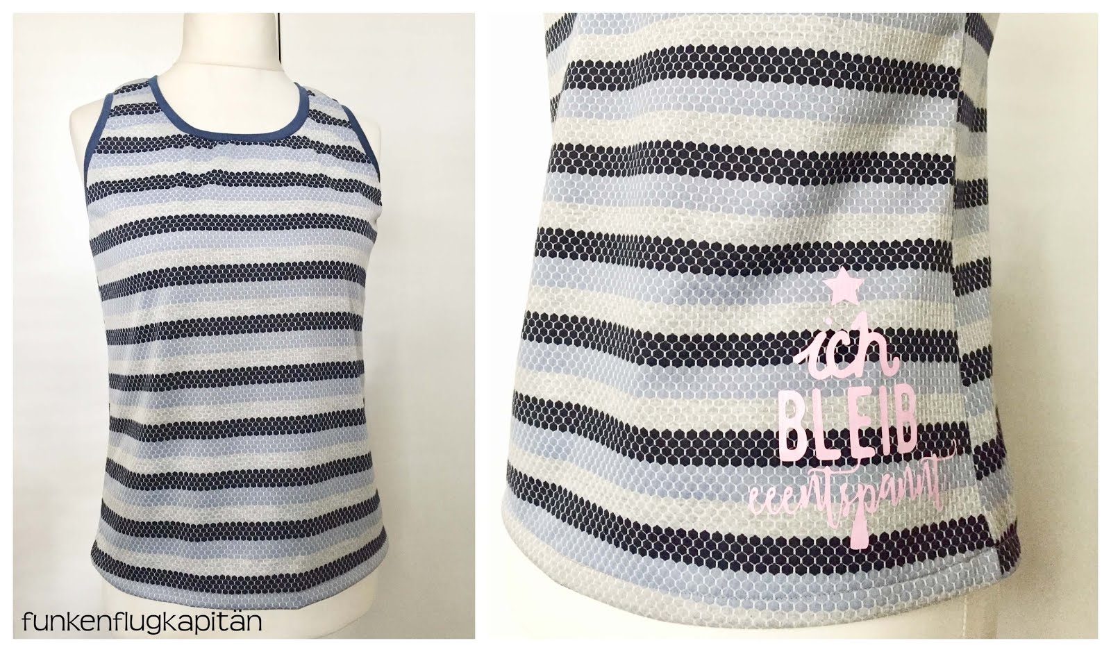 Dann habe ich ein Sport Top genäht. Der Stoff ist extra für Sportmode gedacht und den Spruch fand ich für ein Sport Top wirklich passend.