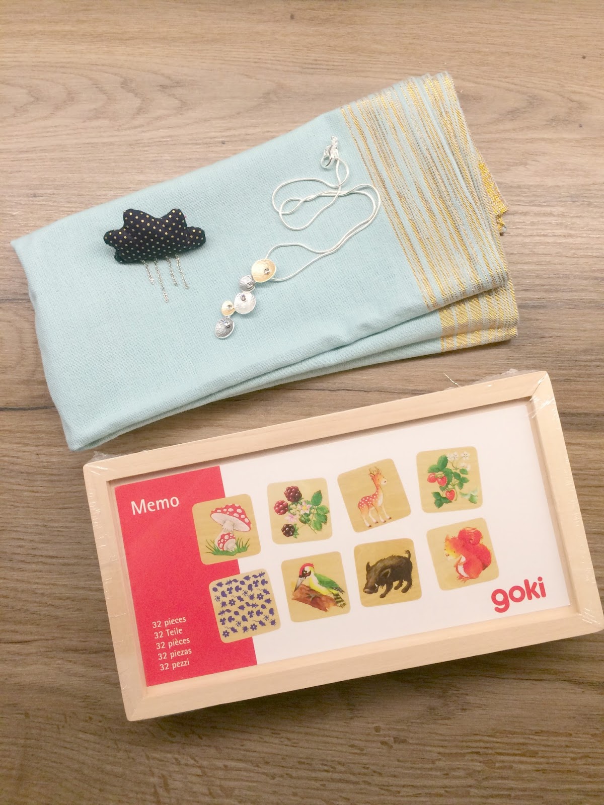 Etwas mitgebracht habe ich auch. Modeschmuck, Schaltuch und ein Holzdomino.