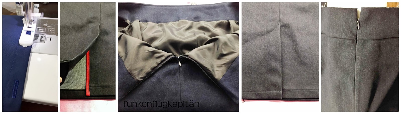 Den Bleistiftrock habe ich, samt dem Futter genau nach dem Schnittmuster genäht und nichts verändert. Am Schlitz habe ich noch als Hingucker eine rote Paspel eingenäht.