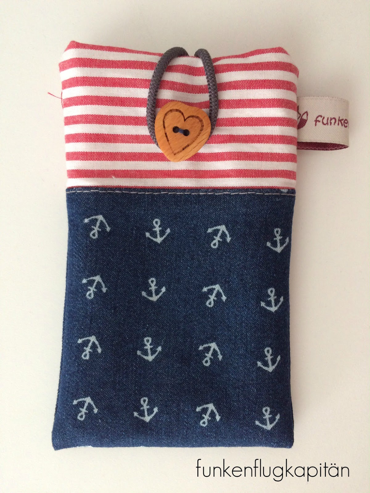 Dann habe ich mal wieder eine Handyhülle genäht. Diese ist aus Jeansstoff und wird mit einem Gummiband geschlossen. Es hat auch mal wieder einer meiner schönen Holzknöpfe darauf Platz gefunden. Wenn ich schnelle Kleinigkeiten nähen möchte, dann ist auf jedenfall diese Handytasche immer mit dabei, sowas kann man ja immer brauchen. Eine andere Handytasche aus Jeansstoff die ich schon genäht habe kannst du dir zum Beispiel hier anschauen.