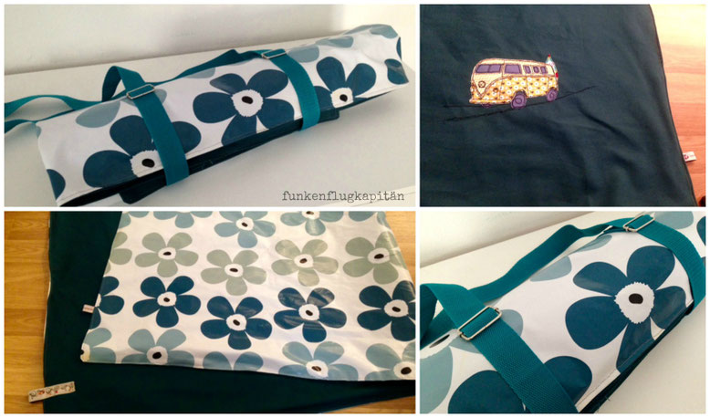 Die Picknickdecke besteht aus einer Unterseite aus Wachstuch und eine Oberseite aus Canvas oder Jeansstoff. Ich mache dir nach deinen Vorstellungen Vorschläge für die Stoffe.