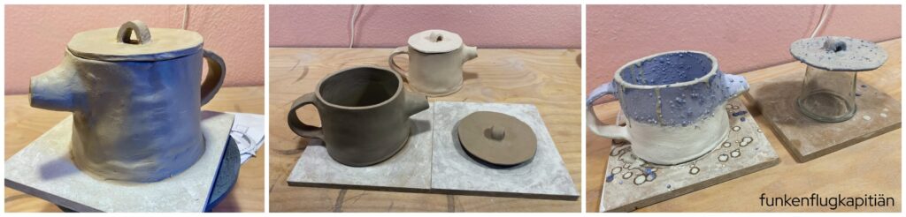 Als nächstes habe ich mich dann an diese Teekanne gemacht. Hier mußte auch noch ein Deckel dazu hergestellt werden. Alles in allem hat das sehr gut geklappt und ich war zufrieden. Und trotzdem war ich gespannt ob man die Teekanne dann auch gut nutzen kann.