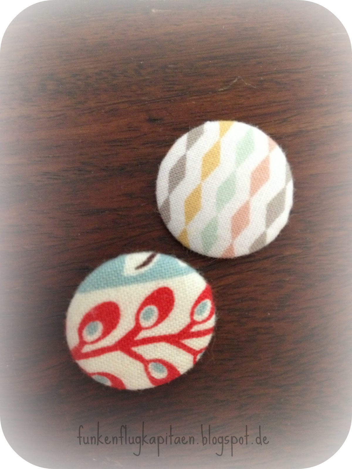 Dann habe ich aus Stoffresten noch ein paar Knöpfe bezogen. Dazu benötigst du Knopfrohlinge und eine Vorrichtung. Die Materialien bekommst du zum Beispiel bei Snaply im Onlineshop.